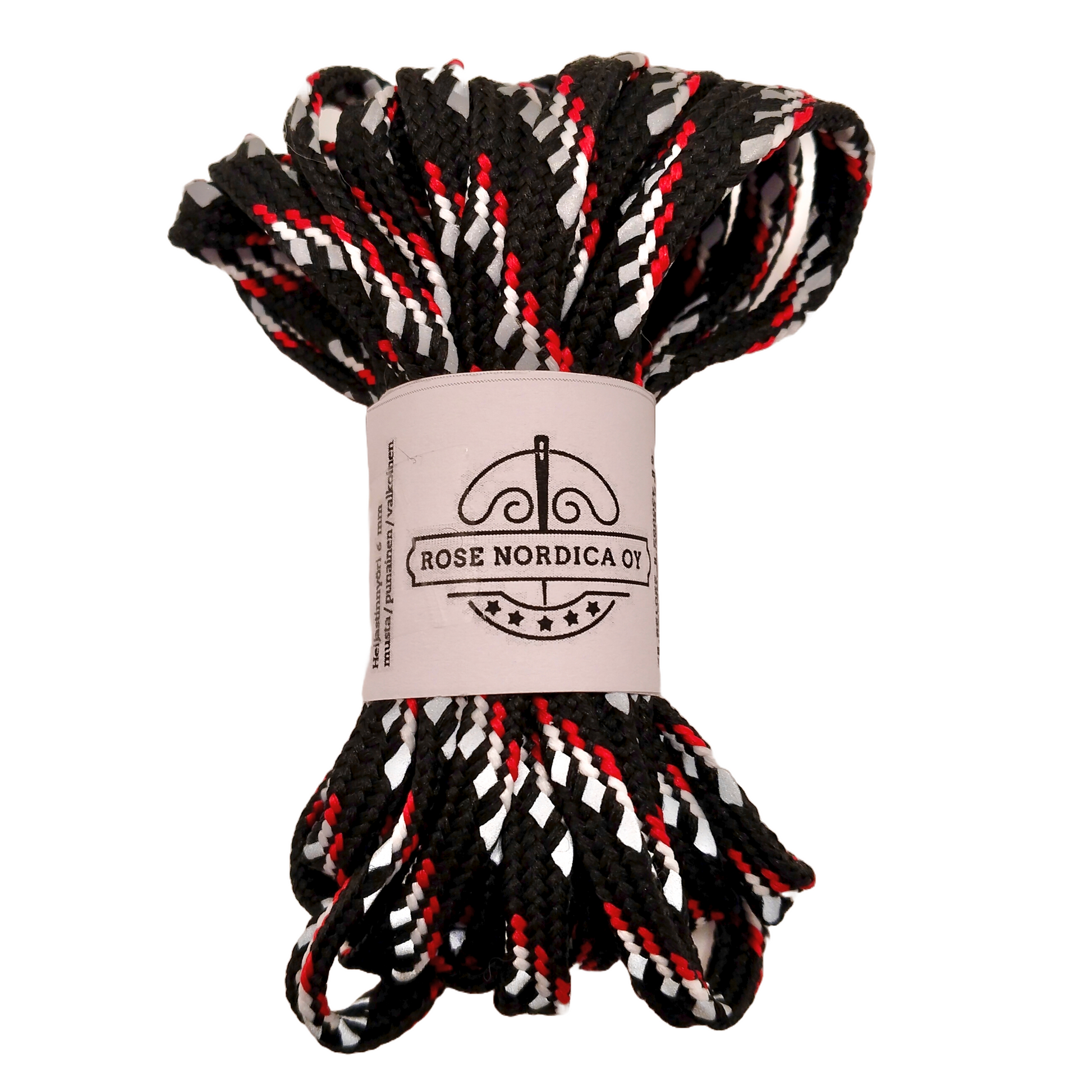 Heijastinnyöri, polyesternyöri, huppunyöri, musta/punainen/valkoinen